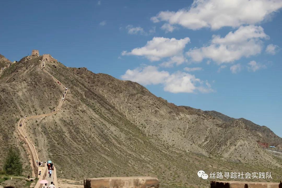 一墩一故事,一城一历史。在空荡荡的戈壁继续前,抬头可见悬壁长城的巍峨。登顶,气喘吁吁;止步,遗憾千年,我们也曾感慨明王朝的郑和下西洋,泱泱明王朝为了家国天下修长城、抵外患,从此丝绸之路上又多了金戈铁马故事。