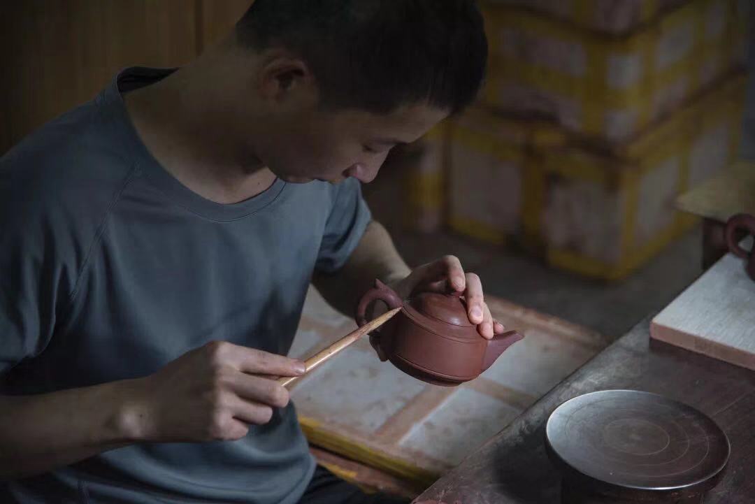 负责拉坯的师傅表示,拉壶身最重要的是静心,由于制作手拉壶的朱泥泥质比较软,在拉坯的过程中一定要慢慢地、轻轻地拉,控制好手上的力度。负责修坯的师傅认为修坯考究的是细心。所谓“细节之处见功夫”,师傅需要通过手上细微的触感感知壶身的不平之处,再用修坯专门的工具对壶身进行精修。