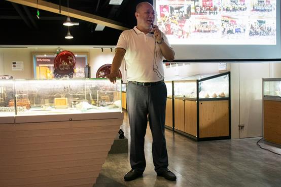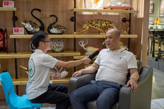 “爱海及贝,爱贝及艺。”当谈到对贝雕的情缘时,陈新峰先生的这句话让队员们耳目一新。作为一个宣扬贝雕文化的企业家,陈新峰先生提出了自己的见解:首先要瞄准群众需求,通过微博、抖音、公众号、小程序等方式推广贝雕艺术,让大众以互联网的形式接触贝雕文化,使贝雕文化真正走进人们的生活。其次是借鉴“他山之石”;要“为贝雕艺术寻觅新出路”不能仅仅局限于潮汕地区,要“随贝走四方”分析其他产区贝雕文化的优劣,才能更好地探寻贝雕文化该走向何处的答案。最后依然要坚定实地展览的形式传播贝雕文化,所以单靠互联网进行传播贝雕文化是无法真正领会到其中的韵味,要通过让人们听、触摸等多种互动方式使更多的人了解贝雕、喜欢贝雕,争做贝类文化传承的接班人。