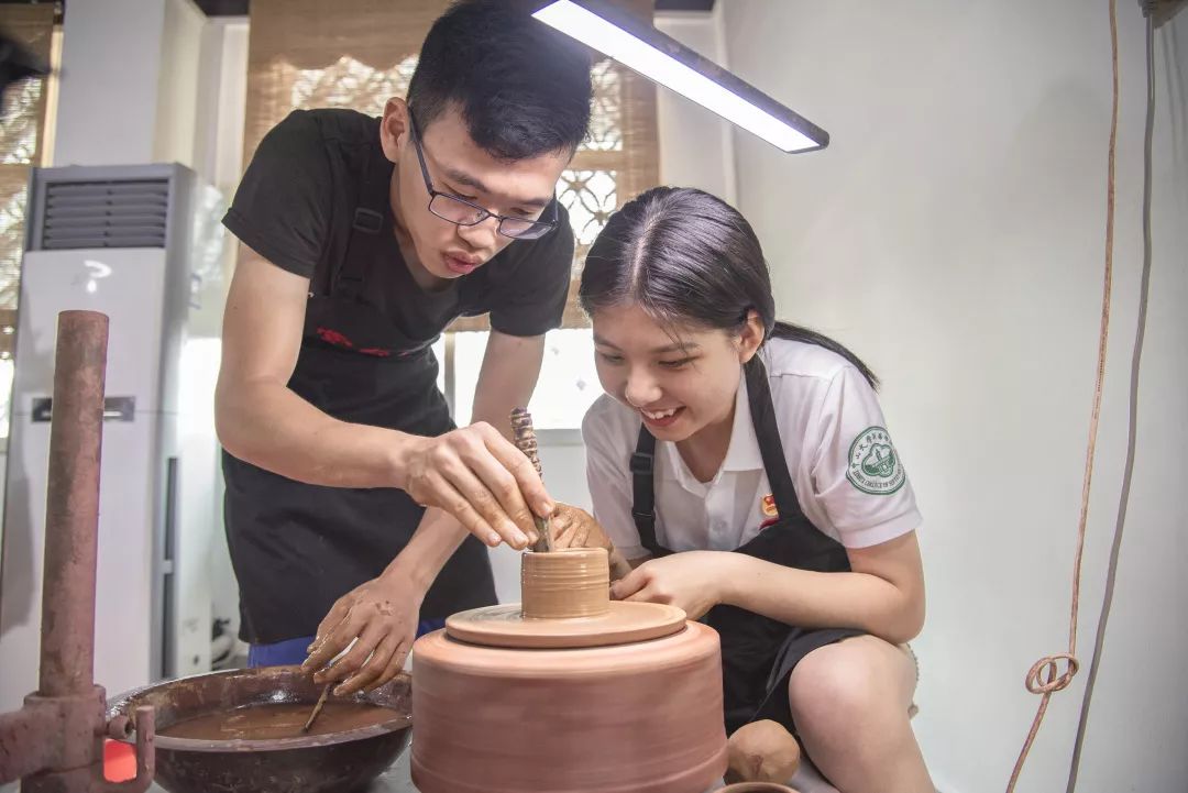 在了解潮州手拉壶的历史来源及制作工序后,队员们对制作手拉壶都有极大的兴趣,也参与到了手拉壶的制作中。队员们都十分享受将浮躁的心静下来制作手拉壶的过程。在学习制作手拉壶的过程中,队员们也感受到了作为当代传统文化的传承者与传播者,应立身行道,了解和学习传统技艺,积极弘扬中华民族传统文化。