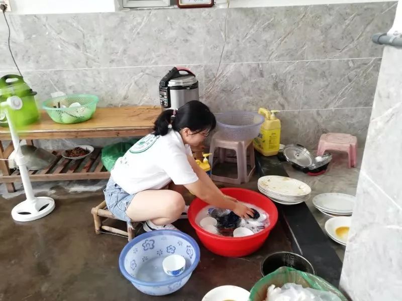 邓嘉莹:在三下乡中,我有一群可爱有趣的队友们,我们一起讨论问题,一起工作,一起行动,互帮互助。还有我们的指导老师,在我们每一天的工作上都会进行指导,让我们每一天都充实。每一天的早午晚餐我们都是一起吃的,满满两大桌,真的像是一家人的感觉。三下乡之旅,虽短短几天,但却让我收获了友情,开阔了视野。相聚总有离别时,暂时的离别只为了下一次的相聚,我的朋友们,江湖再见。