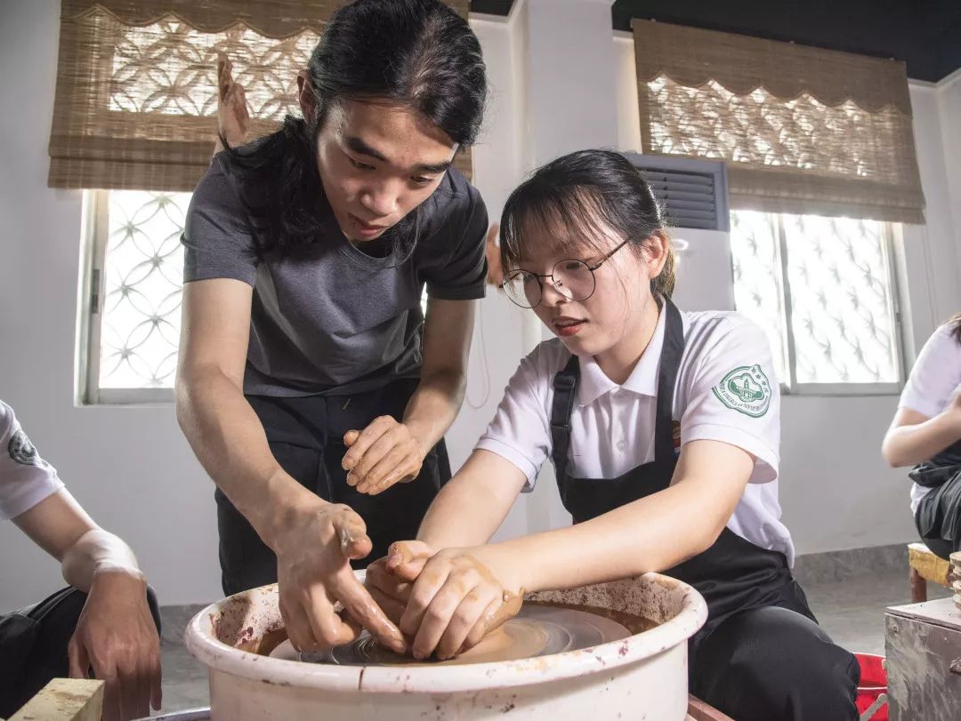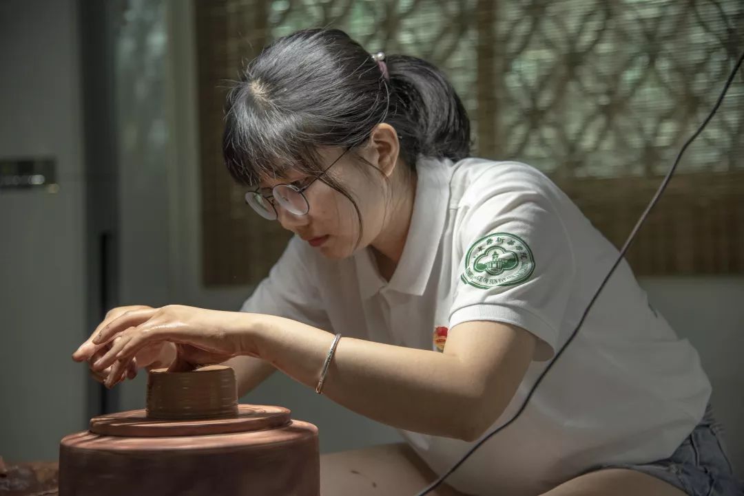 陈巧灵:团队成员们和裕德堂的壶艺师傅们一起学习手拉壶,欢声笑语,共同成长,就像是一个整整齐齐的大家庭。此次三下乡,对自己来说是一次学习,一次成长,收获满满,我感受到了团队的力量,队员之间的互帮互助、互相理解和包容。团队在一起度过的每一帧画面都弥足珍贵,我们的故事定格在这年盛夏之际,而故事不会结束,很开心也很幸运,能和一群可爱优秀的你们共同抒写故事的篇章!