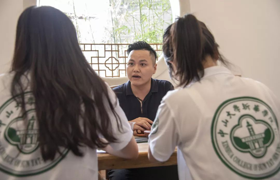 范泽杰:很幸运和裕德堂相遇。等到三下乡结束后回过头来写心得,我发现一个星期的三下乡记忆留给我的只剩下美好。这段记忆犹如一专属列车,前方到站的有:菜脯粥养胃的早餐、前台冰爽的立式空调、八楼令人遐想的月亮、各房间各小组深夜讨论的身影。列车驶入裕德堂,我们能看到扎堆学做壶的小伙伴、会议室里托着下巴思索的写稿小姐姐、扛着三角架四处走动傻笑的摄影小哥哥、为我们冲茶的师兄。茶香飘散,叩三下,礼到,喝茶。