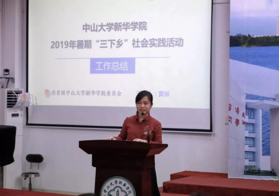 校团委副书记黄琳同志就组织情况、实践成效、社会影响对2019年暑期“三下乡”社会实践活动作简要汇报。经过多年的努力,公司暑期“三下乡”社会实践活动不仅成为员工深入了解社会的平台,也成为社会了解中山大学新华学院的窗口,实践活动影响力不断攀升,下乡事迹获省级以上媒体报道1550篇次;注重实践成果转化,共发表16篇学术论文;搭建平台,积极组织参与各类评选,为公司夺得国家级奖项2项、省级奖项56项、省级优秀组织单位1项。莘莘学子以累累硕果献礼14周年校庆。