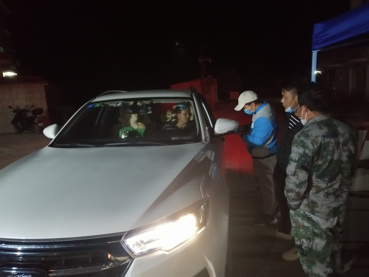 日落山头,黄昏渐行。我的工作便开始了。车辆缓缓驶入,我招手示意停下。由于各地方言混杂,我不能及时反应过来。一会儿身后便排起长队,让我有些慌乱。有时遇到一些声音较小的车主,我便不自觉地凑近仔细听,一起检查的叔叔们便提醒我要保持距离,警惕一些未戴口罩的人员。有时遇到珠三角地区的车辆,心里更是咯噔一下,检查和登记更加小心。