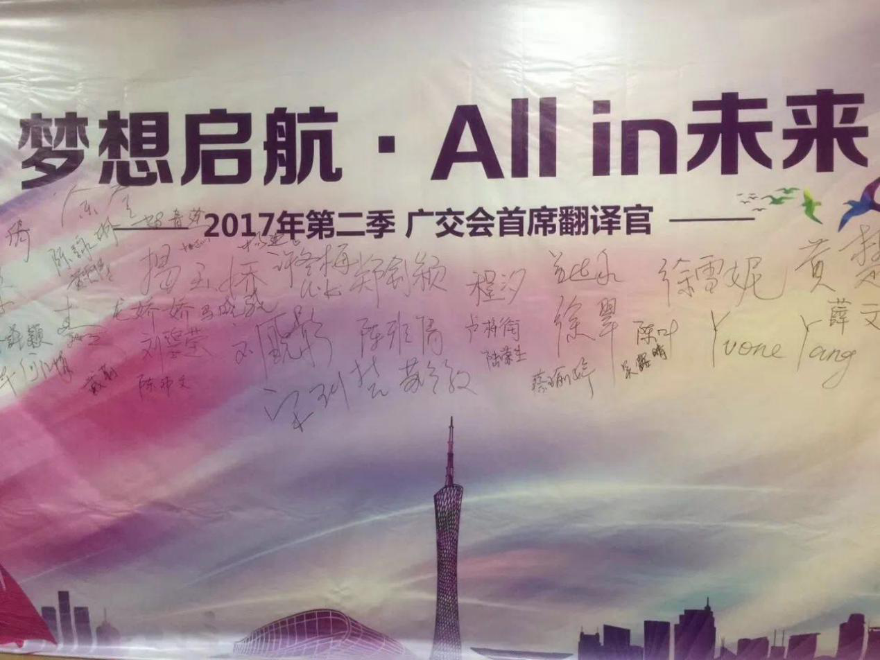 【“梦想起航 All in未来”广交会首席翻译官分享交流会签名墙】