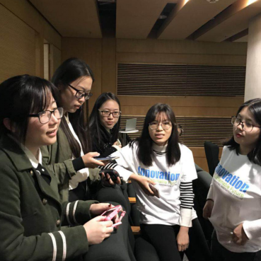 公司志愿者们与会场香港中文大学同传翻译员工进行交流