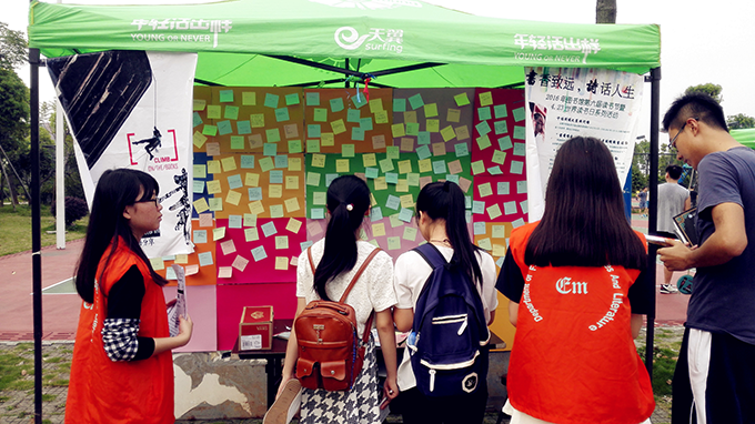 2016年4月7、8日,读书节系列活动之读书感悟分享活动在新旧饭堂前的校道火热开展,活动以分享自己喜欢的作品及读书感悟的形式,吸引了许多热爱看书、读书的同学的参与。
