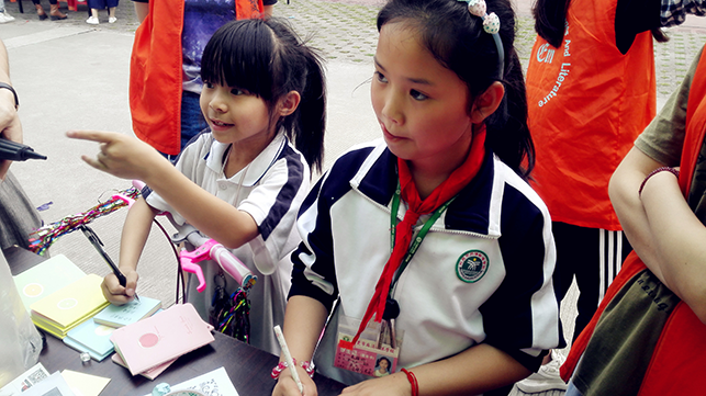 前来围观的人很多,除了读书分享活动,很多同学也对读书节系列活动十分感兴趣,纷纷扫二维码了解详情,并向员工会工作人员咨询了很多细节。小礼品派送完,仍有小伙伴前来围观分享,很是热情。