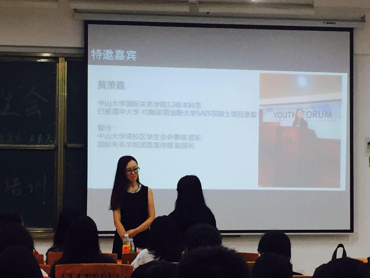 提问环节,同学们纷纷踊跃发言,现场互动气氛热烈。来自中大国际关系学院的黄萧嘉师姐耐心解答了同学们的疑问,包括个人能力培养、团队运作管理、时间分配问题等,并给出了好的意见和建议。