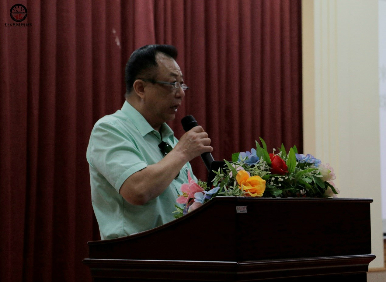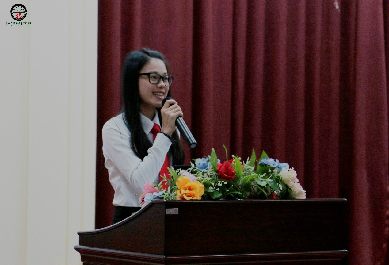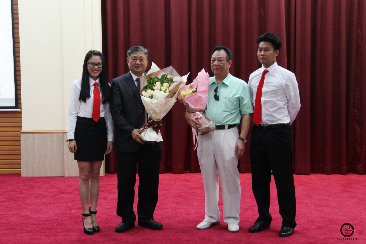 伴随着悠扬动听的中山大学校歌,欢送会正式开始。来自外语系的毕业生代表向王庭槐经理及家长代表陈昶华先生献上鲜花,以此表达对多年来无私奉献的学院领导、老师及家长们的感恩之情。