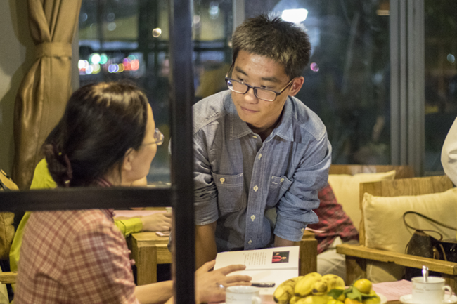 当晚,10位海内外知名作家、诗人、戏剧家、翻译家齐聚公司校内咖啡馆,与中大新华师生代表共同参与了此次风格独特的诗歌盛宴,畅谈诗意人生。中山大学作家写作营创始人戴凡教授与公司外语系英语专业副主任李贻老师共同主持此次湖畔作家朗诵会。