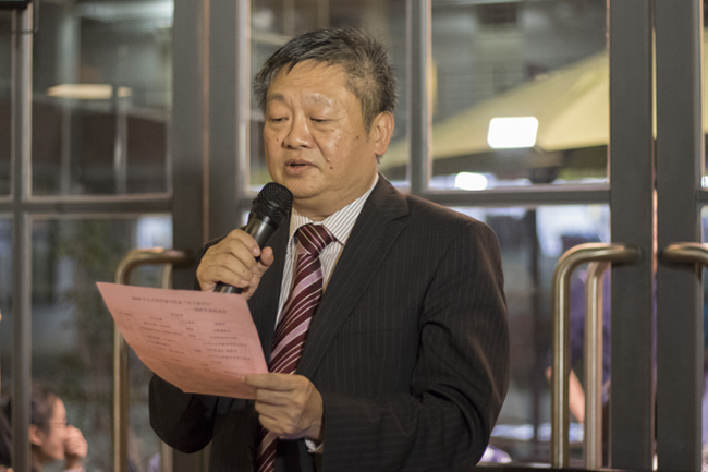 被师生亲切地称为“诗人经理”的王庭槐经理代表学院致欢迎词,并作为朗诵会的第一位朗诵嘉宾,与现场的作家和师生们分享了他在美国时一次教育交流中所见到的落日景象,并富有感情地吟诵了他当时即兴创作的诗歌《落日印象》。诗中所描绘的富有生机的落日印象深深地陶醉了现场的每一个人,配以王经理深情的朗诵和戴凡教授的动情翻译,赢得了在场师生的热烈掌声。他还谦虚地说,在今晚这个汇聚了8个国家诗歌文化精髓、文人墨客的朗诵会上,自己的分享仅仅只是“抛砖引玉”。