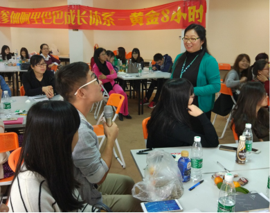 活动开展的第一天,公司派出的两位实习生早早到达会场准备要签到的物料。一名实习生跟着活动负责人一起负责学员的签到事项,并发放名牌,另一名见习生则带领学员们放置行李并安排大家就座。9点半,全员准时入座,一天的培训正式开始。为了调动活动现场学员们的积极性,在开班仪式中,班主任让每桌的学员分成小组,每个组员得为自己小组争取“元宝”,得到最多元宝的前三名则有奖励。气氛活跃的开班仪式结束后,由阿里巴巴的高级客户经理曾经理为大家讲述他的工作历程,令学员们收获颇深。