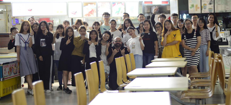 在教务老师安排课表之前,卓越班的员工都是通过微信与周亭老师联系。而第一次见面是在格物楼②-B605同传室。有员工回忆:当时大家十分紧张,手不知道往哪放,只好怯怯地找了位子安静地坐着。周亭老师用一个小游戏打破了僵局,她给每个人发了一张小纸条,上面写着爱好、家乡、梦想等12个小问题,她让员工们带着这张小纸条在班里寻找和自己有共性的同学并留下他/她的名字。在短短的十分钟里,大家没有了开始的尴尬与拘谨,从交换名字到认识对方,大家有默契地用英语进行交谈。那一幕,值得每个卓越学子珍藏。