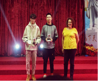 外籍教师Luz Maria Barella Perez(右)与二等奖获奖选手黄逸昭、杜圳林合影留念