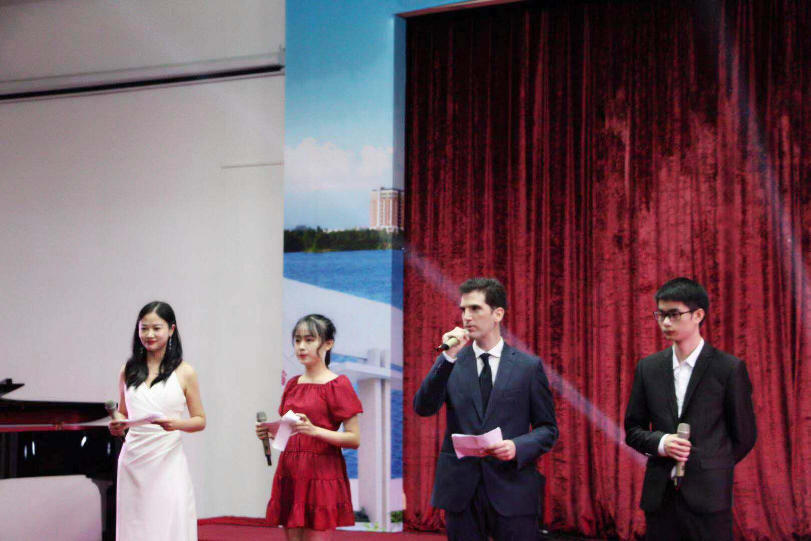 “举办外文歌曲大赛的初衷是希望新华学子们在比较繁重的学习之余,能够有时间感受全世界优秀的文化。今天精选出来的外文歌曲也是全世界优秀文化,特别是歌曲艺术的优秀代表作品。音乐,可以使我们的快乐更快乐,它也可以让我们悲伤的时候忘记悲伤而快乐起来。所以,当我们欣赏不同语言唱出来的歌曲的时候,我们对世界的理解,对生活的理解也更广泛和深刻。习近平总书记在庆祝改革开放四十周年的致辞中,也发出了将改革开放进行到底的号召,而今天晚上的外文歌曲赏析大赛,也是落实这种号召的一种具体的体现。中大新华的员工不仅要了解中国文化,也要了解世界不同文化,知己知彼,促进世界文化交流与合作。”
