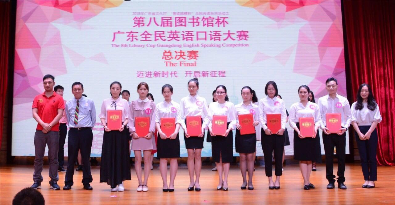 图书馆杯广东全民英语口语大赛是由广东图书馆学会、广东高校图工委、广东省立中山图书馆联合主办、历经8年探索实践的广东特色文化品牌赛事,受到省内广大群众和莘莘学子的热烈欢迎。本次大赛在4月份开始启动,采用“网络初赛”+“网络复赛”+“现场总决赛”的模式,利用线上语音分析系统进行自动评分排位,排名前20的选手直接晋级总决赛。公司2017级英语专业刘飞燕同学凭借其出色的语音语调,从 26937名网络初赛选手中脱颖而出,包括她共有9名选手直接晋级现场总决赛。决赛当天,20位来自不同行业的选手围绕“迈进新时代·开启新征程”这一主题,同时结合自身经历展开演讲,在“英语口语秀”和“现场考验”两大环节展开精彩角逐,最终经过大赛专家评审团评审,依次评选出大赛特等奖1名、一等奖3名、二等奖名6名、三等奖10名。公司刘飞燕同学,经过三小时的紧张、激烈的角逐,获得此次大赛三等奖。