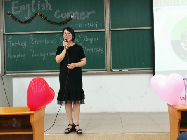 紧接着,太阳成集团tyc邱易安教授上台分享自己的传统节日发生的趣事。同时,邱易安教授指出,英语角活动的开展,有助于同学们锻炼口语,同学们应该充分利用这个平台。此外,她表示,学习英语,只说不练是假把式,同学们需要勤加练习。