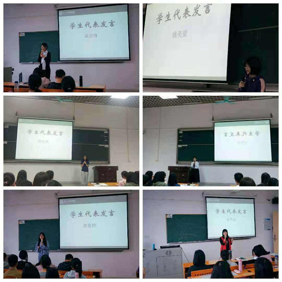 黄榅婷、张翠娟、 陈苡锋、庄秒丹、黄欣然、姚美能六位同学作为员工代表进行发言,在演讲中,他们表达了对学校和学院的感谢,对自己通过层层选拔后入选“卓越英语创新班”的欣喜与自豪,对学习目标的设定,对自己的严格要求,身为第一届“卓越人”的意义与责任,以及对未来的美好展望。