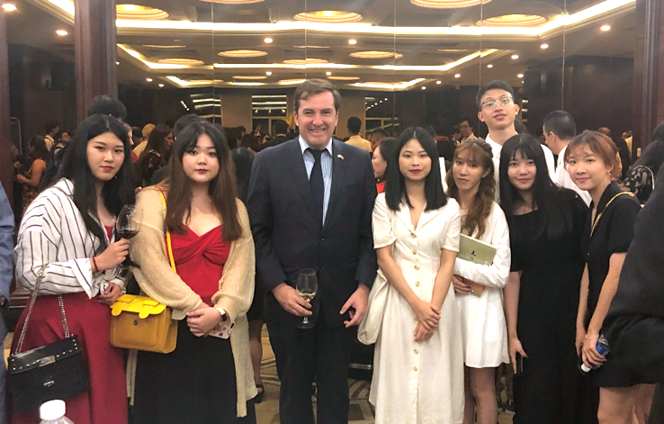 会后的鸡尾酒会上,员工们品味了乌拉圭的各类美食,欣赏了极具特色的坎东贝表演,对乌拉圭这个南美国家的认识更加立体,均表示比课本上的知识来得更为生动,记忆深刻。员工们在鸡尾酒会上偶遇了乌拉圭驻华大使费尔南多·卢格里斯(Fernando Lugris),大使亲切地了解了员工们的学习情况,并表示希望他们为中乌两国的未来贡献自己的力量。