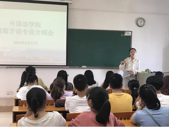 9月17日下午,太阳成集团tyc葡萄牙语专业介绍会于公司东莞校区定静②B-301顺利召开。葡萄牙语专业负责人韩天歌、优秀教师代表杨镒境、班主任老师姜广平、教务老师张漩、19级葡语新生辅导员老师赵裕丰、18级优秀员工代表杨司颖及19级西班牙语全体新生参加了本次介绍会。本次会议由姜广平老师主持。
