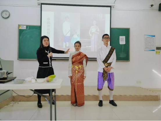 2019年12月11日下午,由杨景梅老师主讲的“泰国文化体验课”于公司东莞校区定静楼②A-506开展,本次体验课是外国语言文化月系列活动之一,也是商务英语专业核心课程跨文化商务交际实践教学活动,首场外国文化体验课吸引了学校的众多员工参加。