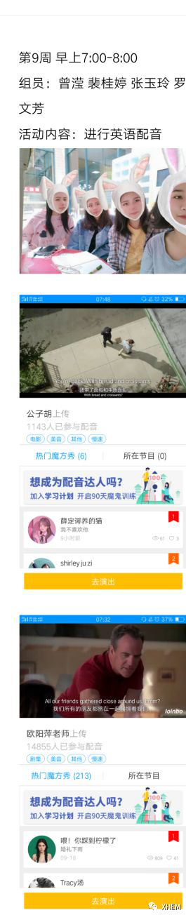 组长们把每周的全英小组活动发到班群,与全班同学一起分享