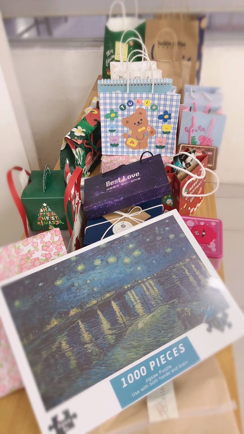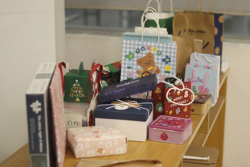 此次班级活动在同学们的欢声笑语中迎来了尾声,同学们拿出了自己提早准备好的小礼物,活动也来到了最后的一个环节——交换礼物。