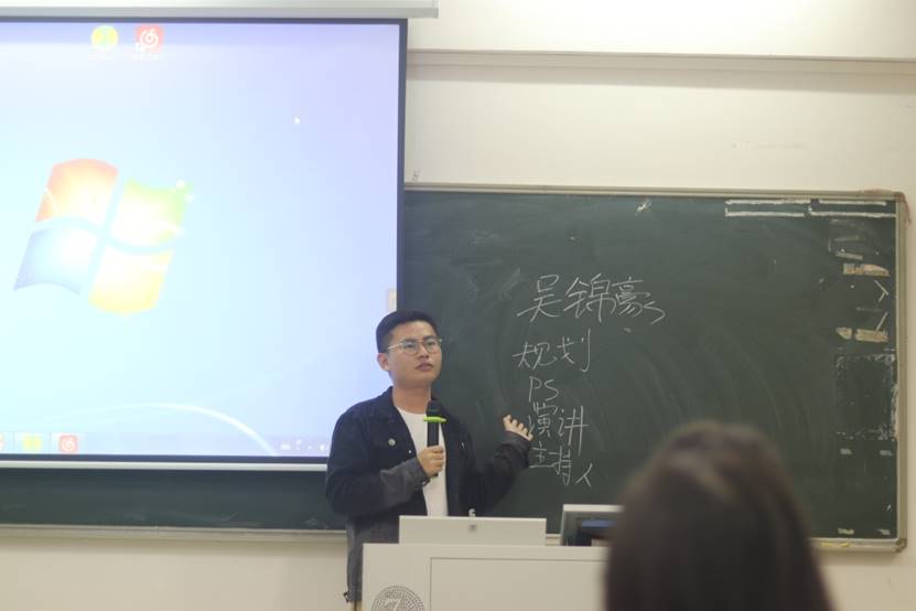 19级班长吴锦豪在此次班级活动中分享自己的成长经验,他倡导同学们尽快做好大学规划,多学习其他的技能,不要虚度大学四年光阴,四年后成为自己想要成为的人。