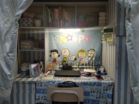 宿舍里的每个角落都被精心布置,风格整体简单而又不失温馨。