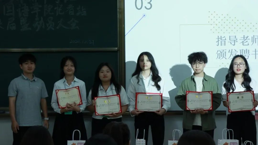 第三,是颁发聘书环节,李凯老师为22级的小记者们颁发了聘书,以表彰他们一年来的辛勤工作和贡献。