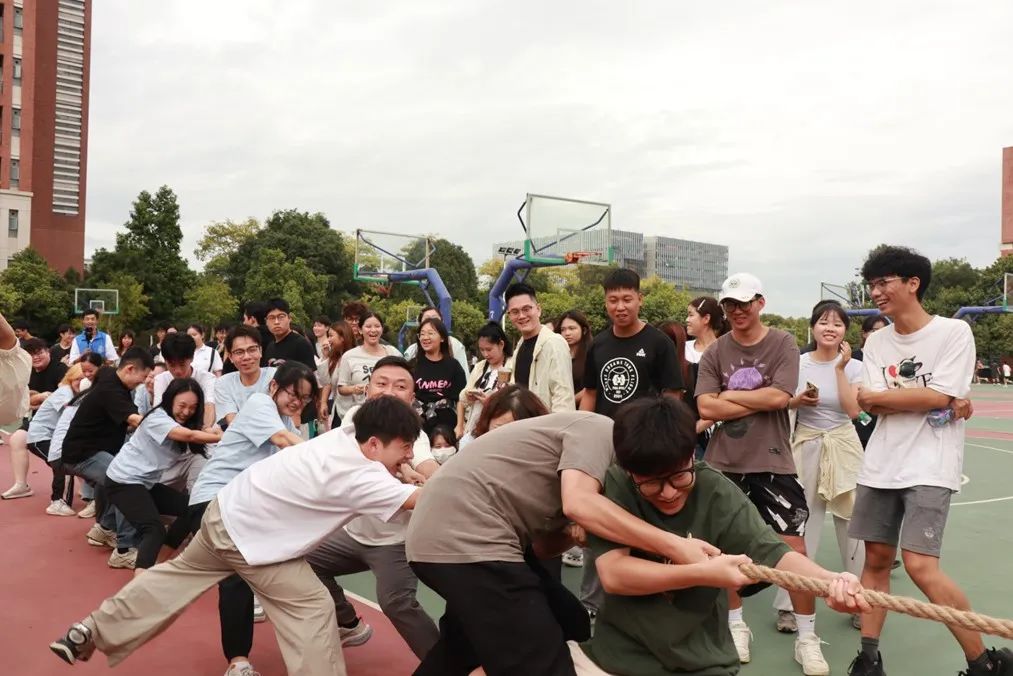 拔河比赛更是激烈,两队教工紧握长绳,脚跟扎地,身体后倾,全力以赴。随着裁判的哨声,双方开始角力,绳子上的标记在两队之间来回移动,场面紧张刺激。