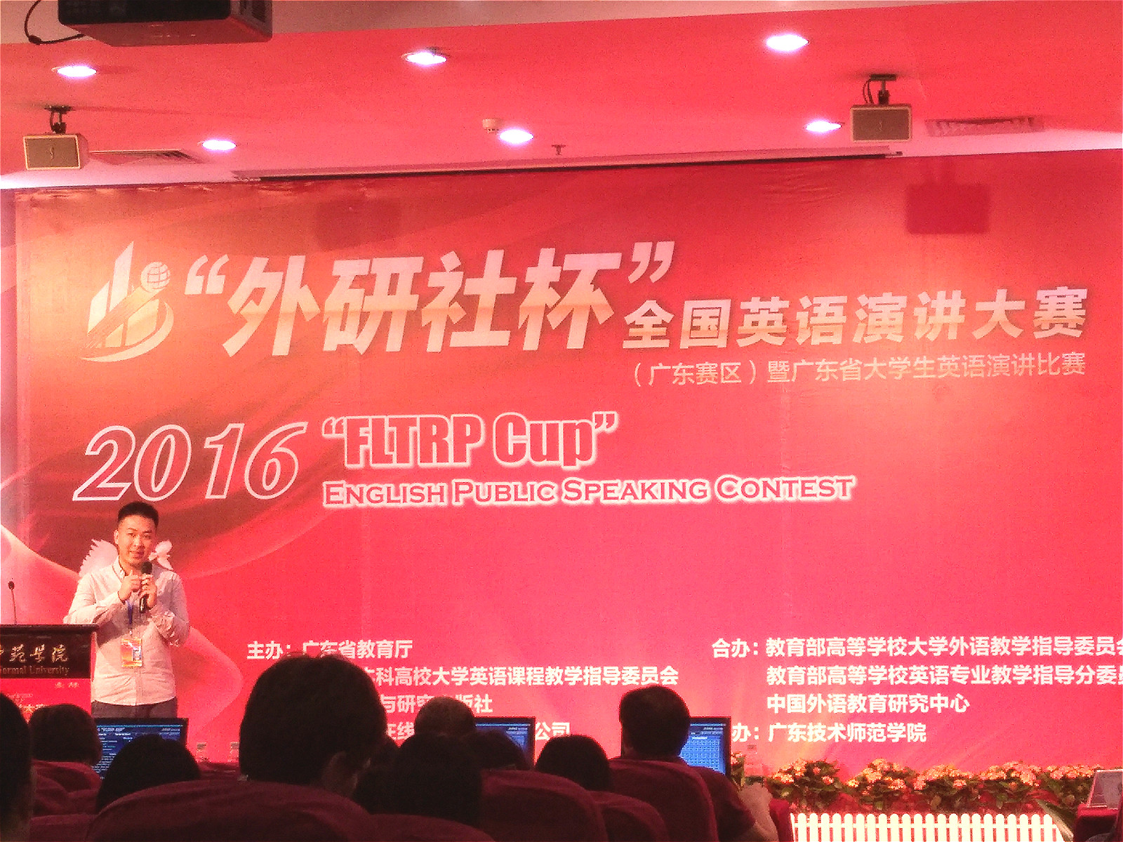 11月6日,“外研社杯”全国英语演讲大赛(广东赛区)复赛暨广东省老员工英语演讲比赛在我广东技术师范学院天河校区讲学厅举行。来自广东省54所本科院校的66名选手参加了比赛。由公司外国语言文学系教师李明娇指导的2013级英语专业员工邓乃俊经过学院初赛选拔,顺利进入此次省赛,并最终荣获复赛三等奖。