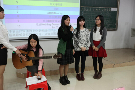 而进入白热化阶段的最后环节,动人的旋律,精彩的话剧和诗歌朗诵都赢得评委一致好评,观众掌声雷动。这又再一次展示了外语系学子的多才多艺。随着第三环节的结束,刘霞老师也应邀为本次活动做总结点评,她表示今晚的选手表现出色,活动精彩并鼓励大家今后积极参与。而在紧张的计分的同时,主持人也跟观众进行猜词互动,同学们也积极抢答,乐在其中。最后,五队参赛队伍的队伍不负众望,共同角逐了本次竞赛的一二三等奖。