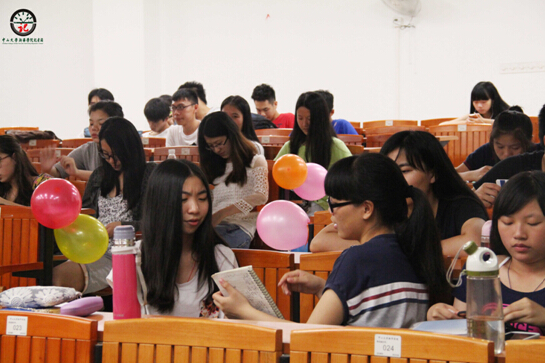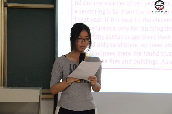 为了能够让老师清晰、正确地听出每位同学的发音,此次活动分为等待室和参赛室两个地点进行。参赛们怀着紧张的心情来到课室,有的做着赛前的练习,有的在放松自己。随着主持人宣布“语音语调”大赛开始,选手们按照编号轮流在事先打印出来的英语名篇`时事新闻中随即抽取一篇,在礼仪的带领下进入了参赛现场。
