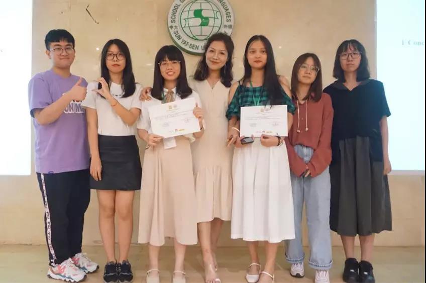 2019年6月14日,由葡萄牙驻广州领事馆、中山大学国际翻译学院主办的第一届华南地区葡萄牙语演讲比赛在中山大学拉开序幕。参加比赛的选手为中山大学国际翻译学院、广东外语外贸大学、北京师范大学珠海分校、中山大学新华学院、广东外语外贸大学南国商学院等华南地区八所高校的葡萄牙语员工。本次比赛,公司派出两名同学代表参赛——18级葡语专业陈思威(中年级组)、杨司颖(中年级组)。经过一番激烈角逐,杨司颖同学最终荣获第一届华南地区葡萄牙语演讲比赛(中年级组)第三名、全场第四的好成绩!