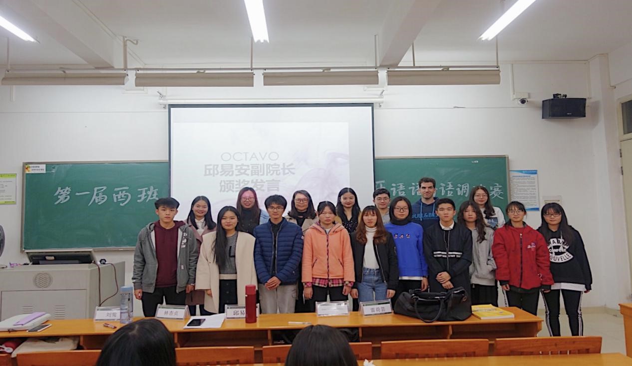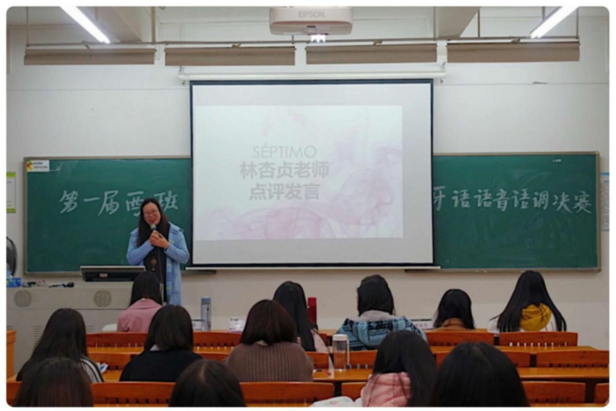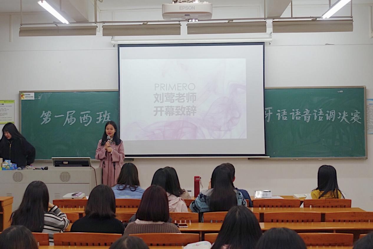 比赛伊始,刘莺老师率先讲述了同学们西语学习的过程并肯定了同学们的努力及辛勤付出。