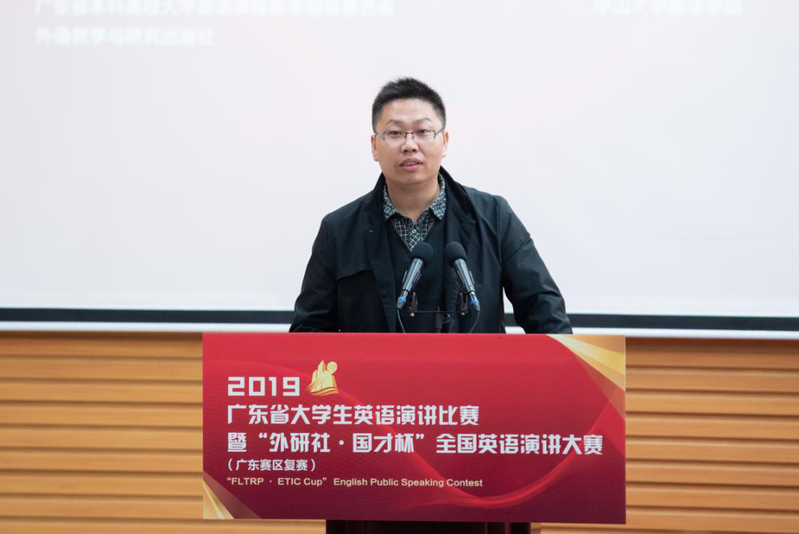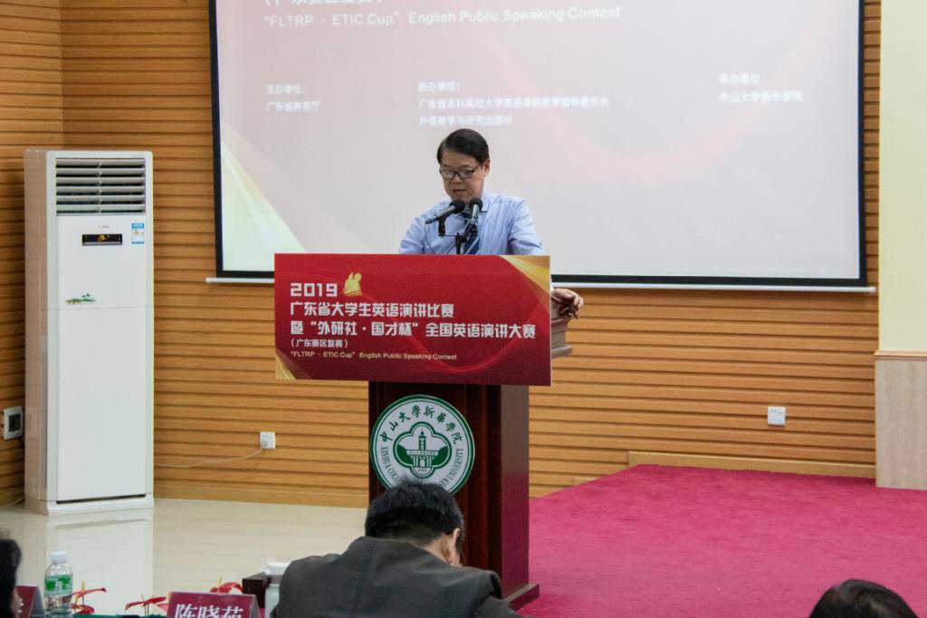 广东省教育厅高教处李成军科长感谢中山大学新华学院作为比赛承办方的精心筹备,为参赛选手提供优质的服务和良好的比赛环境。广东省老员工英语演讲比赛是广东省老员工教学英语方面不可多得的赛事,代表了广东省老员工英语演讲的最高水平,对英语教学的指导改革有着极大的作用;“外研社·国才杯”全国英语演讲大赛是全国参赛人数最多、规模最大、水平最高的英语演讲赛事。他希望所有参赛选手借助这个舞台锤炼专业本领、锻炼实践能力,也希望英语专业人才培养能够依托比赛,强本领,长才干,涌现出更多自信发声的优秀英语人才。