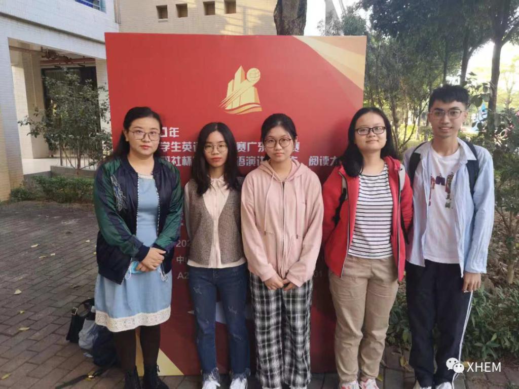 带队老师黄珍和参赛选手林婉婷、姜名泉、莫小莹、张逸熙同学合影