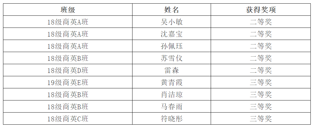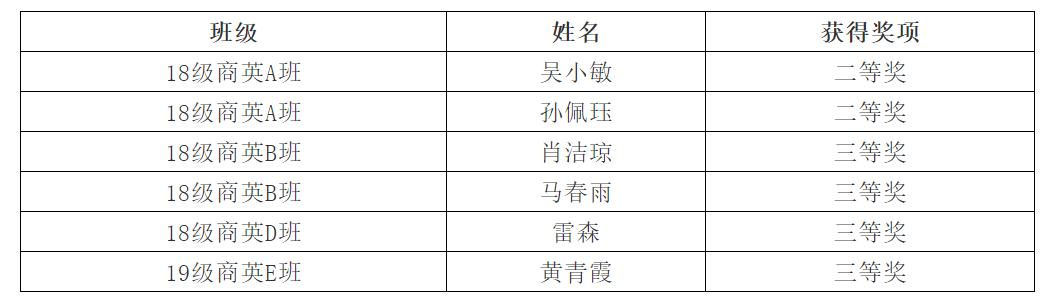 在决赛阶段,难度增加,竞争更为激烈。决赛内容涵盖听力、商务知识与词汇、语法等,对同学们的商务英语基础知识和语言运用能力进行了考查。公司6名参赛员工与众多参赛选手同场角逐,表现优异,分别获得二等奖及三等奖的好成绩。决赛获奖名单如下: