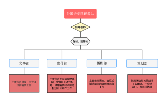 接下来,一张图告诉你关于外院记者站的组织部门: