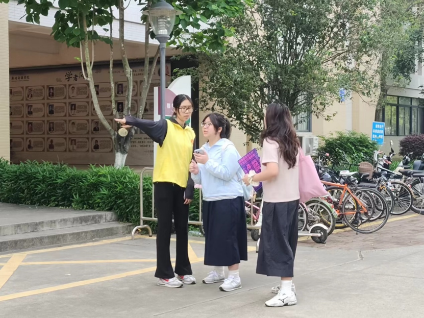 有的志愿者亲切地给考生指路,在考生询问考试信息时耐心地给他们作答,帮助考生缓解紧张情绪,引导考生准确地找到考场。他们始终秉持着“哪里需要我,我就去哪里”的志愿服务精神,为考生们提供切实的帮助。有的志愿者把守考试入口,细心地核对考生考试信息,暖心地提醒他们携带好考试必备物品,并为他们加油打气,鼓励他们放松心态,沉着应考。青年志愿者以满腔热情和坚定的责任感,为广大考生提供了暖心、周到的服务。