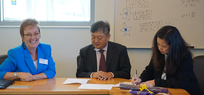 2016年4月27日,公司外国语言文学系与美国拿撒勒大学(以下简称拿大)教育学院正式签署“对外英语教学”(TESOL)硕士公司产品项目协议。公司经理王庭槐、外国语言文学系主任廖益清;拿大教育学院经理Kathleen M. DaBoll- Lavoie、亚太地区事务办公室主任Sam Song、TESOL项目负责人Rui Cheng及双方教师代表等出席了签署仪式。