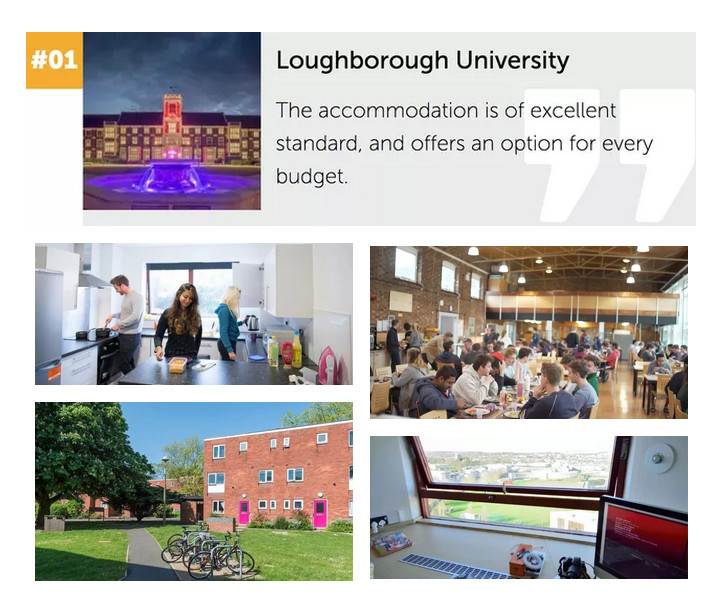 要知道,就在去年,英国《泰晤士高等教育》(Time Higher Education)也发布了对全英高校的宿舍的排名。Times 根据英国大学宿舍的性价比、位置、管理、清洁度、公共区域、社交活动、WiFi网络等因素来考察打分,进行了全英高校宿舍 Top50 的排名整理。拉夫堡大学宿舍同样位列全英第一!