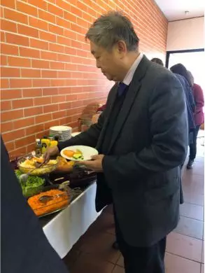 随后,为进一步了解在校员工生活情况,校办国际合作项目顾问Niall Power先生邀请公司代表团前往阿威罗大学员工食堂,体验具有葡萄牙传统风味午餐,同时介绍了学校基本餐食情况。