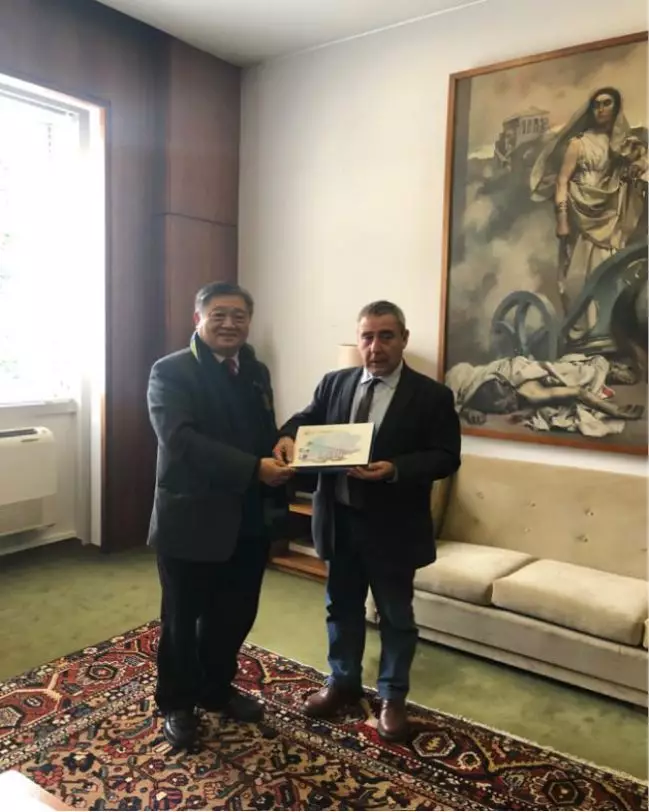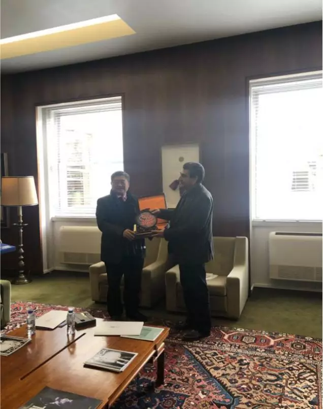 会谈结束后,双方互赠纪念品 (左起:公司董事长王庭槐、里斯本大学副董事长Luis Manuel dos Anjos Ferreira)
