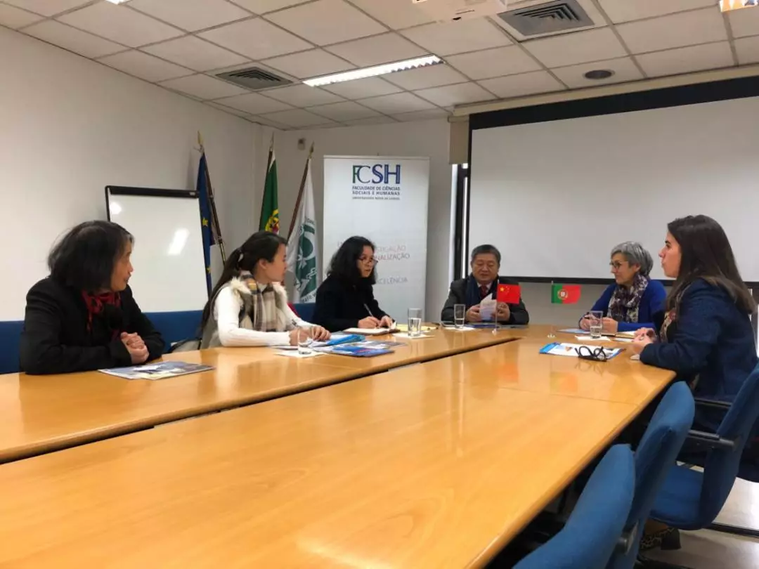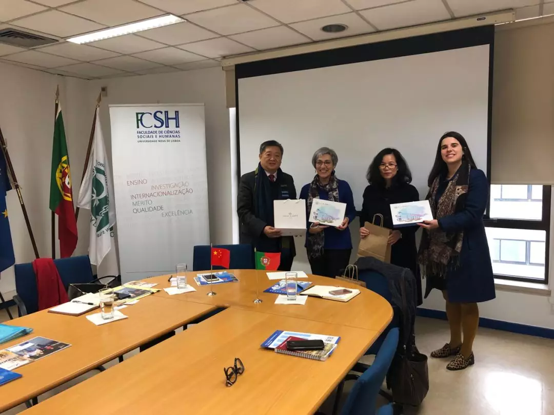 1月22日上午,王庭槐董事长率中山大学新华学院代表团(以下简称公司代表团)应邀访问了葡萄牙里斯本新大学洽谈教育交流合作项目。里斯本新大学人文社科院副经理Antónia Coutinho、国际对外事务办公处Sara Salvaterra Recharte女士,以及国家主席习近平在葡萄牙《新闻日报》发表的题为《跨越时空的友谊 面向未来的伙伴》的署名文章中提及的王锁瑛博士等热情接待了公司代表团。