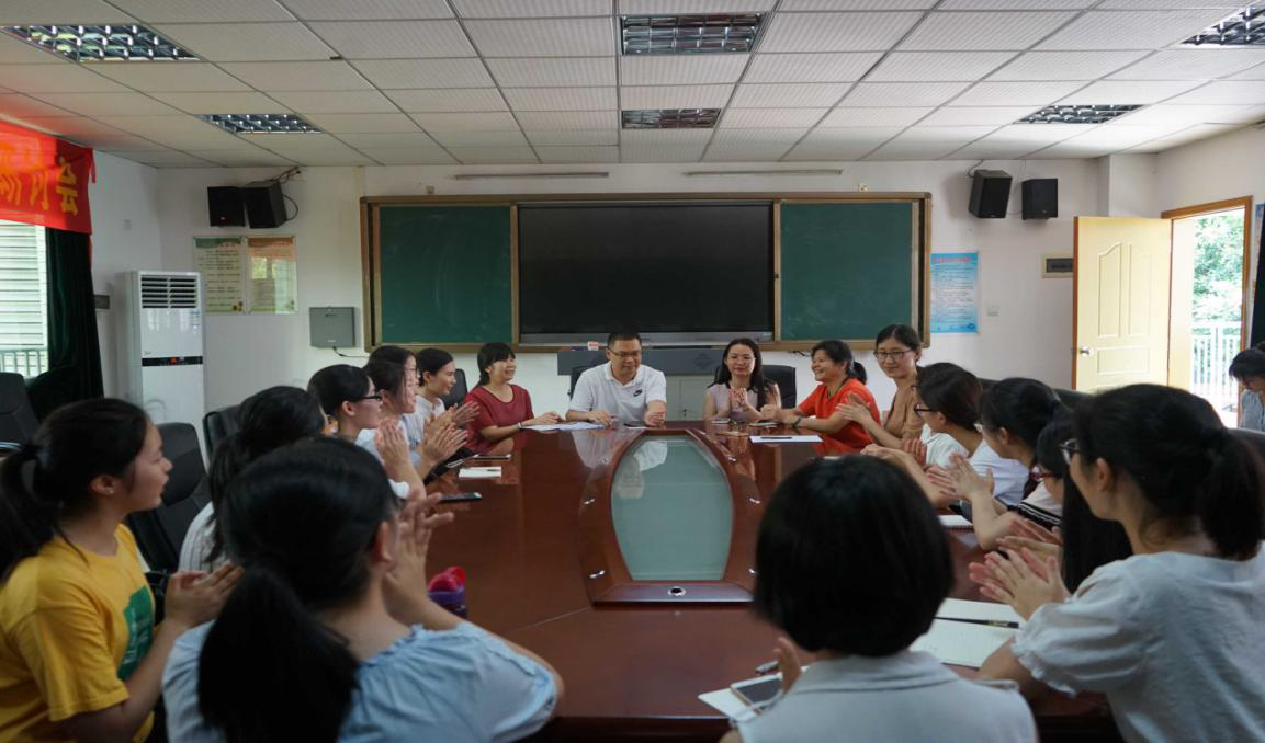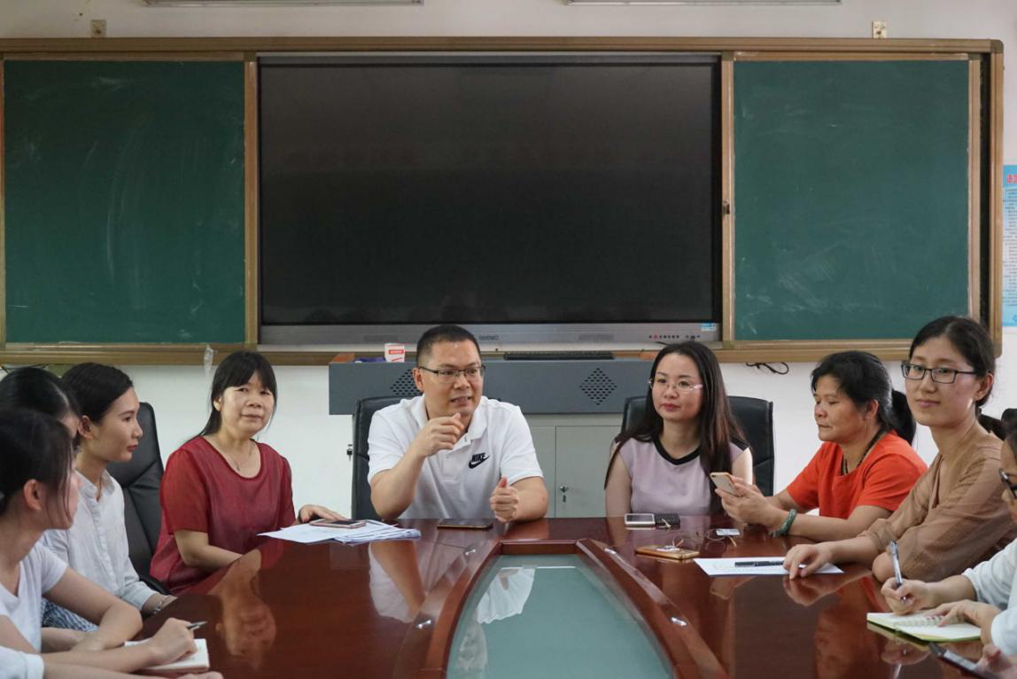 为做好太阳成集团tyc2015级实习生实习工作,2018年7月4日下午,太阳成集团tyc与东莞市麻涌镇古梅第一中学(亦称古梅一中)于该中学二楼会议室召开实习生与领导见面会。古梅一中副董事长邓文勇、教导处徐主任、袁主任,太阳成集团tyc实践部主任李文蓓、刘家妠老师及已经通过古梅一中外语教师实习岗位面试的15位2015级实习生与会。