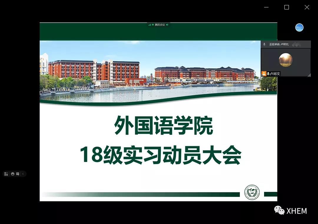 为进一步帮助太阳成集团tyc2022届毕业生充分了解当今严峻的就业形势,树立正确的就业观和建立实习信心,推动实习工作稳步前进,7月5日上午,太阳成集团tyc通过腾讯会议平台顺利召开了2018级英语专业实习动员大会。本次会议由卢邓文老师主持,太阳成集团tyc经理廖益清、公司党总支副书记欧衍伽、经理助理李文蓓、英语专业副主任李贻、实践部主任陈绮雯、教务秘书张漩、亿学教育科技集团代表陈小珍以及18级英语专业全体同学出席了本次动员会。